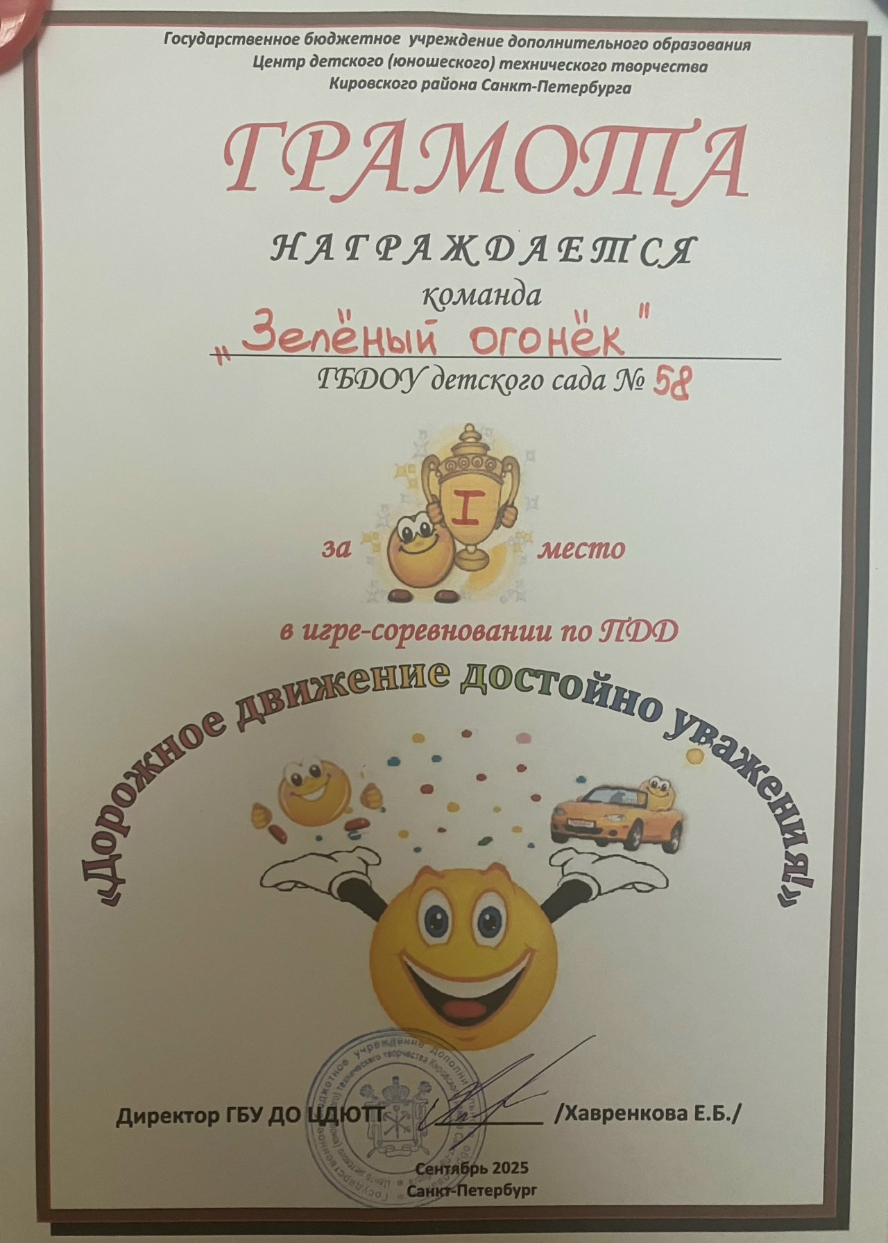 Мы поздравляем команду нашего детского сада «Зеленый огонек» с победой!